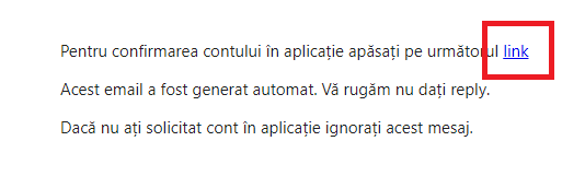 Veți primi un email de la adresa aplicatie.aerofoto@mapn.ro cu un link de confirmare pe care trebuie să-l accesați pentru a finaliza procesul de înregistrare în aplicație.
